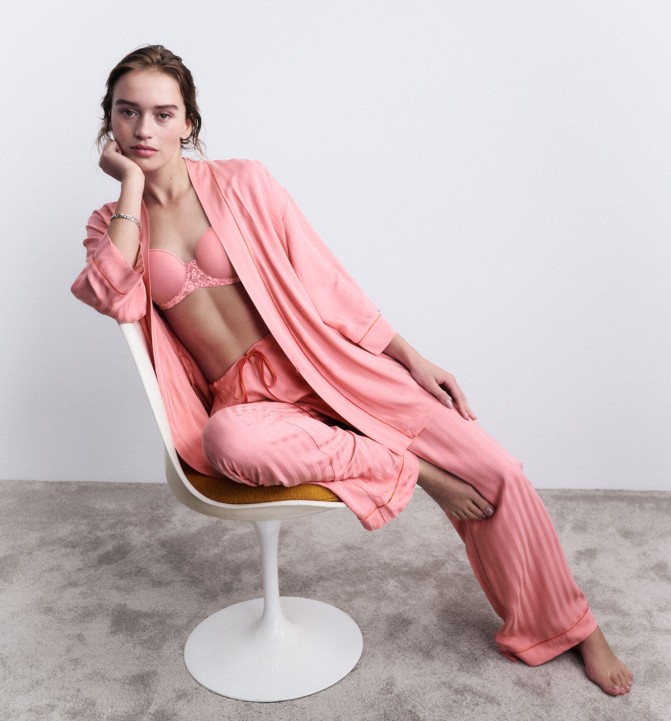 PRO TIP SHOPPINGOWY: Bielizna w nasyconym odcieniu różu (Wild Rose) nada stylizacji rockowego vibe’u. Biustonosz „zagra” doskonały duet z czarną ramoneską w stylu lat.80., a wystające paseczki stringów wyłaniające się spod jeansów dodadzą stylizacji pikanterii.