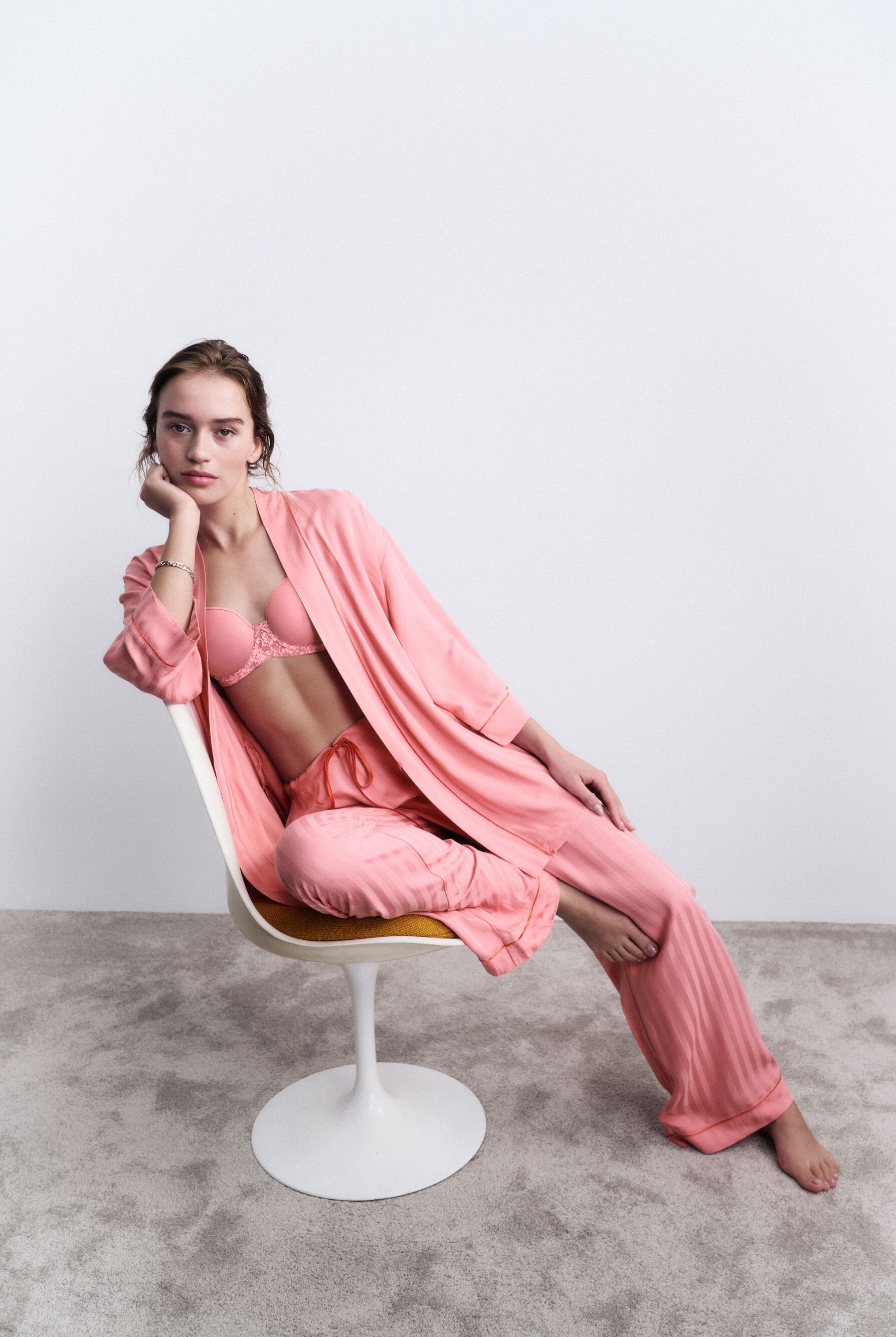 Są takie chwile, gdy komfort gra pierwsze skrzypce — szczególnie w domowym wydaniu, gdzie styl spotyka się z codziennością. Dlatego domowy outfit zasługuje na równie świadomy wybór jak stylizacja „na wyjście”. Wiskozowa koszula i spodnie z linii AMOURETTE JACQUARD redefiniują pojęcie komfortu: są lekkie, płynne, miękko układają się na sylwetce i podążają za jej ruchem. Sprawdzą się podczas wieczoru z książką, porannej kawy, ale też wtedy, gdy dzień niepostrzeżenie wychodzi poza domowe ramy. To nocna estetyka w wersji premium — przytulna, a jednocześnie dopracowana w każdym detalu.