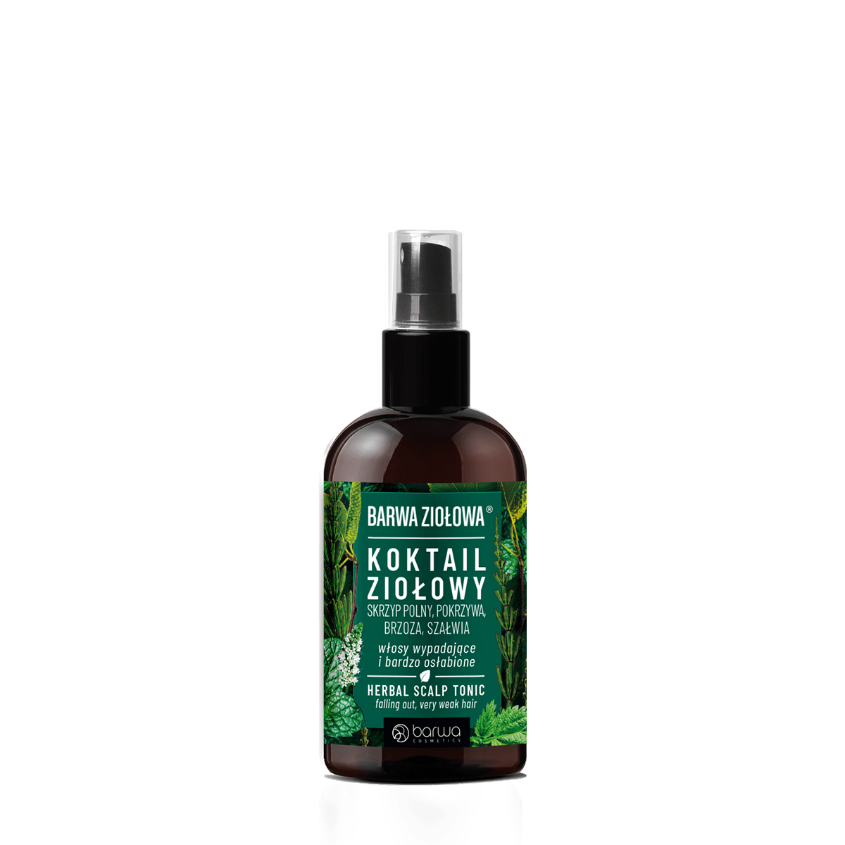 Koktajl ziołowy z linii Barwa Ziołowa® przeznaczony jest szczególnie do pielęgnacji włosów wypadających i bardzo osłabionych. Skutecznie regeneruje zniszczone włosy, odżywia osłabione cebulki oraz hamuje proces wypadania. Regularnie stosowana wcierka odbudowuje strukturę włosa, głęboko odżywia, a także zapewnia szybszy wzrost. Przywraca pełen blask, nadając zdrowy wygląd od cebulki aż po końce.
